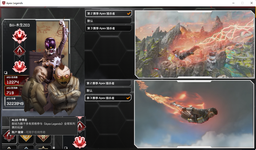 看描述令牌❤️S2S3双动态猎杀尾❤️algs冠军标❤️3传万杀恶灵苦无❤️散热器寒霜394金皮