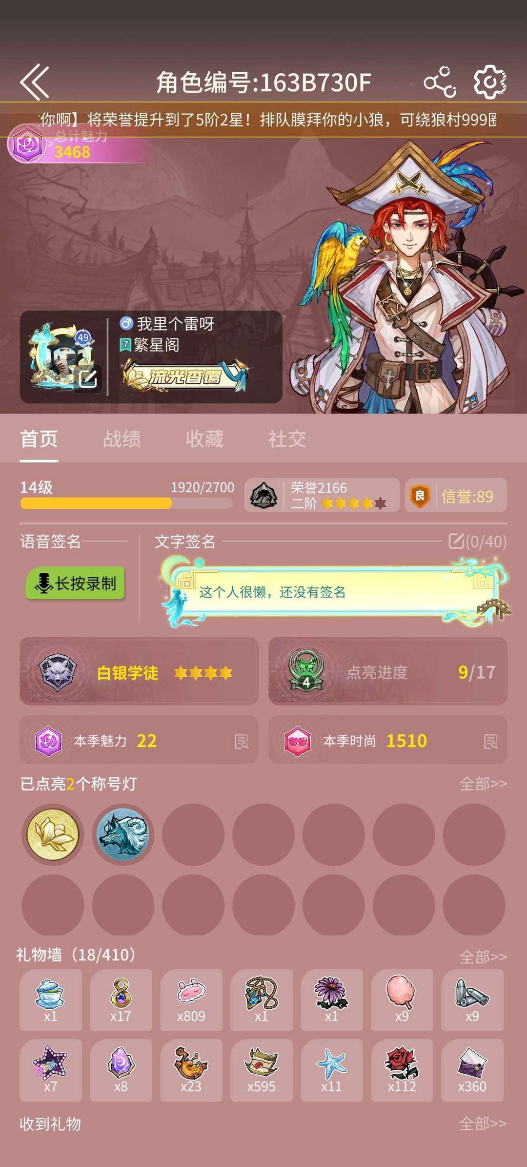 角色名:我里个雷呀