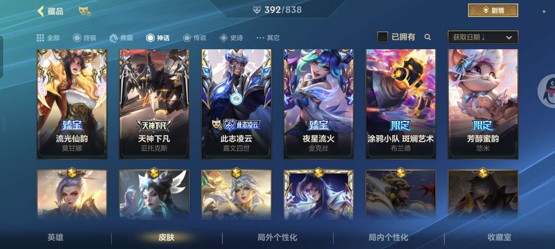 剑魔天神下凡,金克丝狂潮逆焰,120传说皮,10神话皮