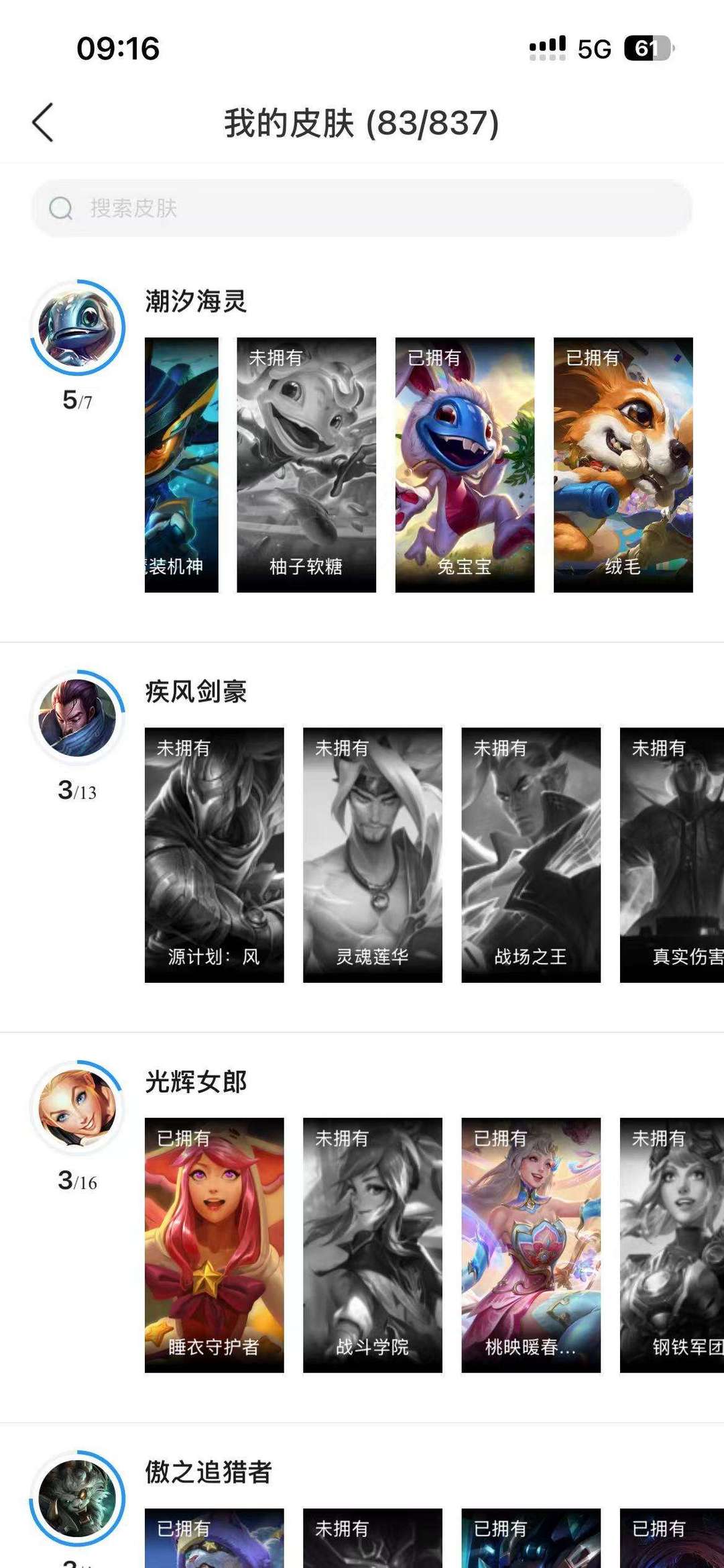 lolm 英雄92 皮肤83 有几款典藏 喜欢的自己租