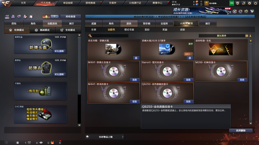 限制: 撤单率<50%才可租用此帐号幻神蔷薇毁灭音效卡+白虎裁决+六烈蝴蝶爆破生化都可玩