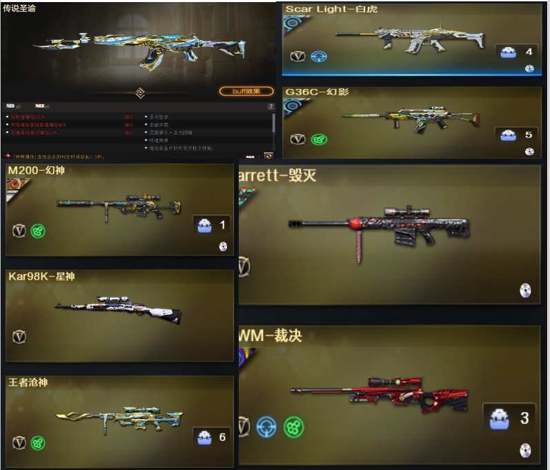 M200幻神王者沧神G36C幻影AWM裁决白虎隼研蝴蝶刀usp雷暴柯尔特无冕之王传说圣谕极品爆破号