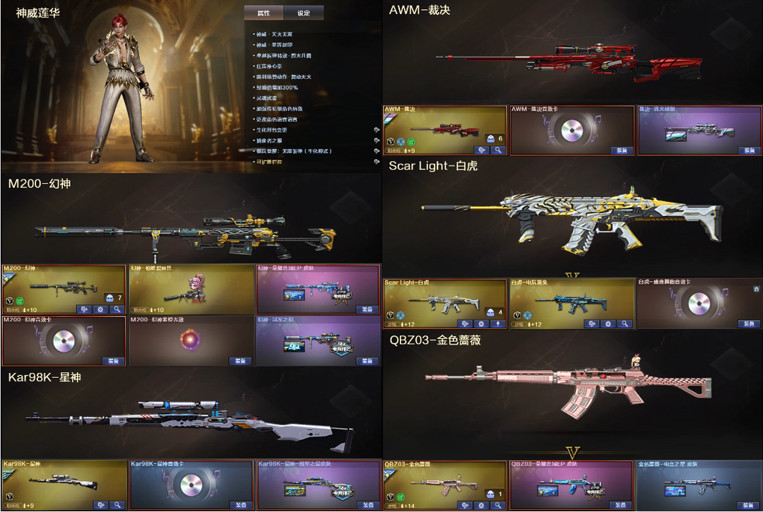 神威莲华3防♉幻神3皮EP音效卡+星神裁决白虎三件套⚡QBZ蔷薇幻影天袭朱雀✅3质量副武器+4防魅影