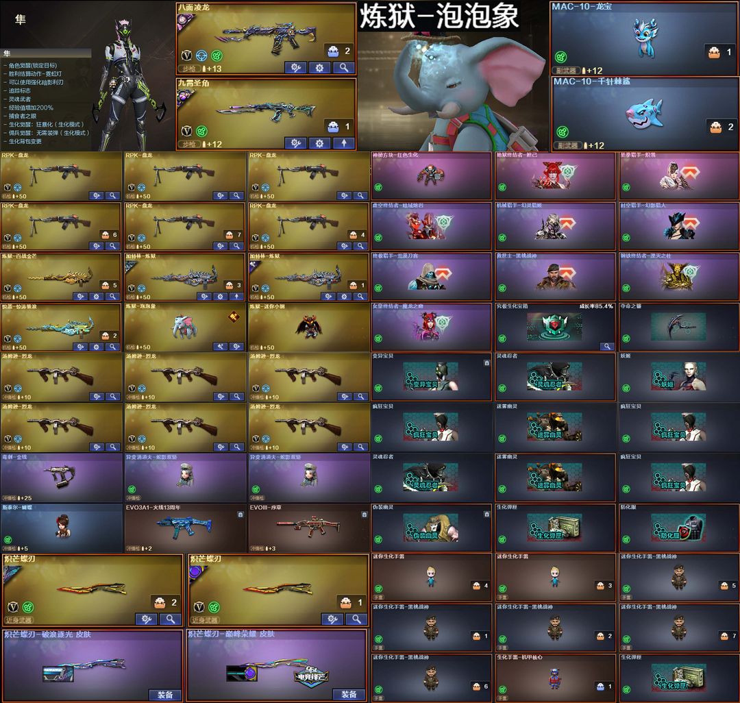 满级九霄圣角八面凌龙❤炼狱泡泡象龙宝蝶刃满生化❤妮妮EP套星火幻神音效卡裁决❤幻影传说圣谕星骇玄豹套