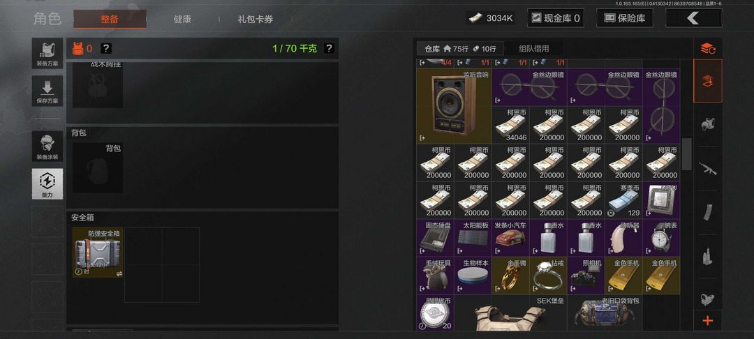 纯科恩币3034k四格保险如果进去不是直接不wan直接tui有保险箱钥匙所有枪配件可用可排位猛攻