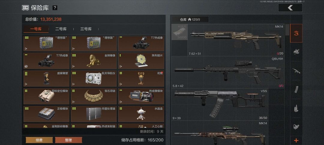 有300k可供猛攻玩家使用,护航首选,仓库内的全护甲和满改枪可使用,禁止使用保险库内东西