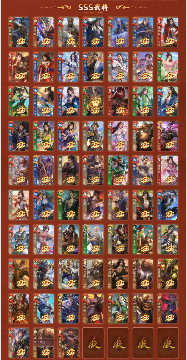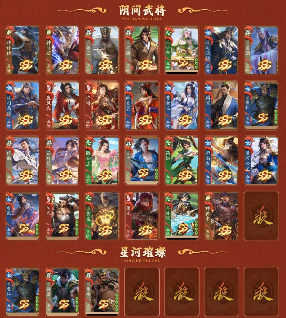 多阴间将许靖庞凤衣威张辽谋贾诩谋司马懿乐祢衡清河公主神马超惊雷动曹宪元春动薛灵雲金蛟动谋司马师周宣