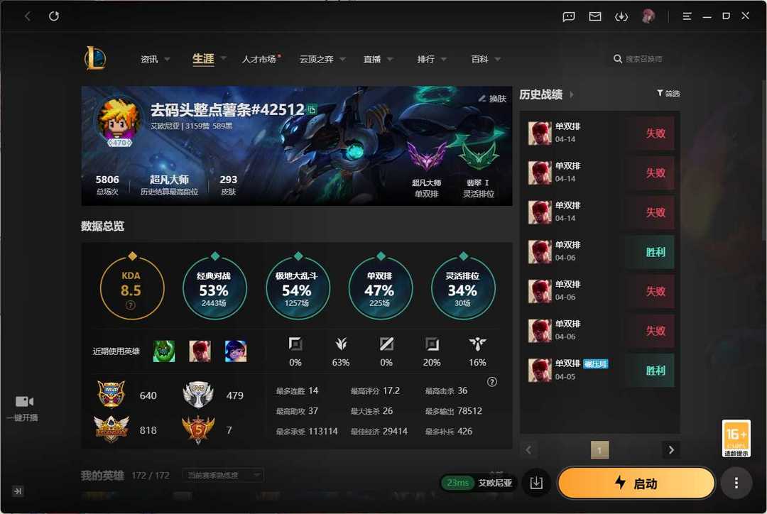 段位:470级 超凡大师