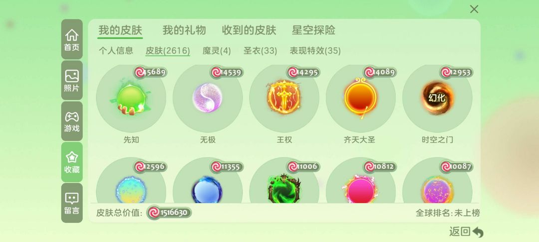 2600皮肤,四魔灵,满级圣衣,还有高级关键词,以及传说光环等
