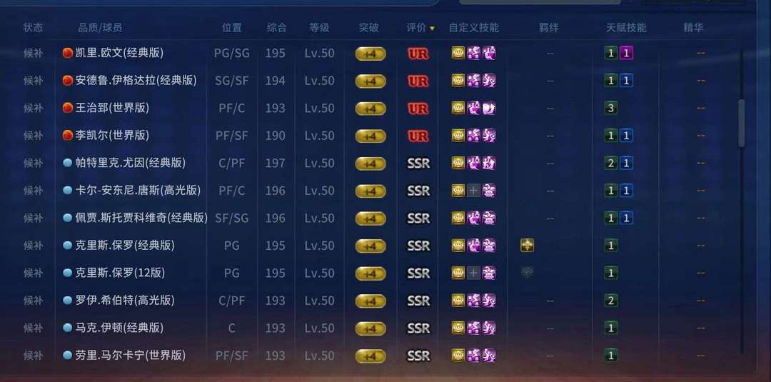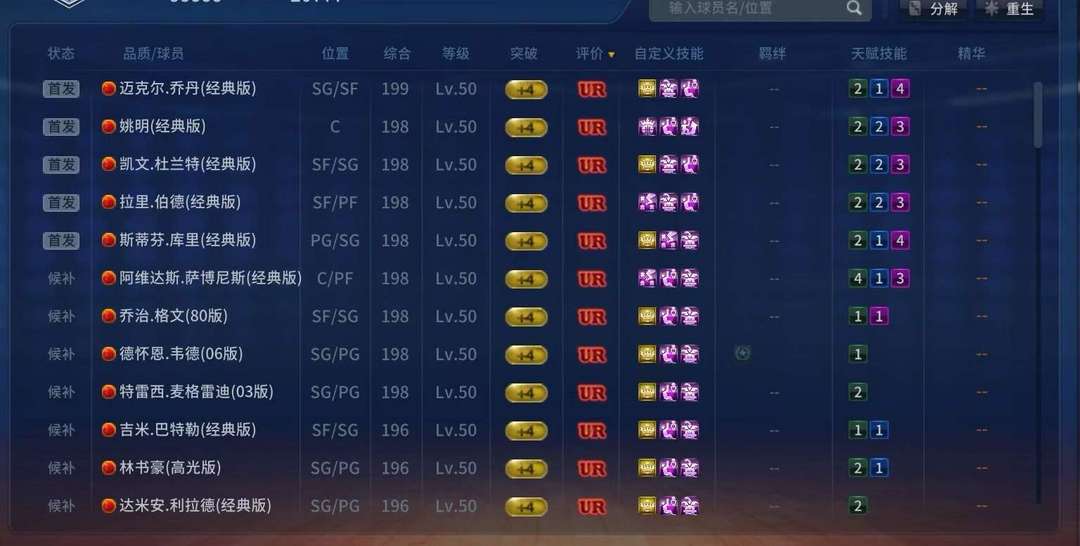 角色名:ur库里姚明乔丹阿杜伯德萨博科比