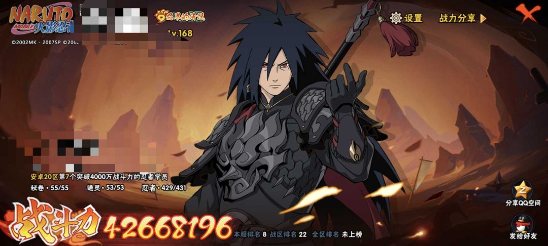 十尾带土神驹斑晓创生迪达拉☀️V15全忍者全皮肤☀️4300万全S全A☀️高魅力☀️年☀️氪金满配