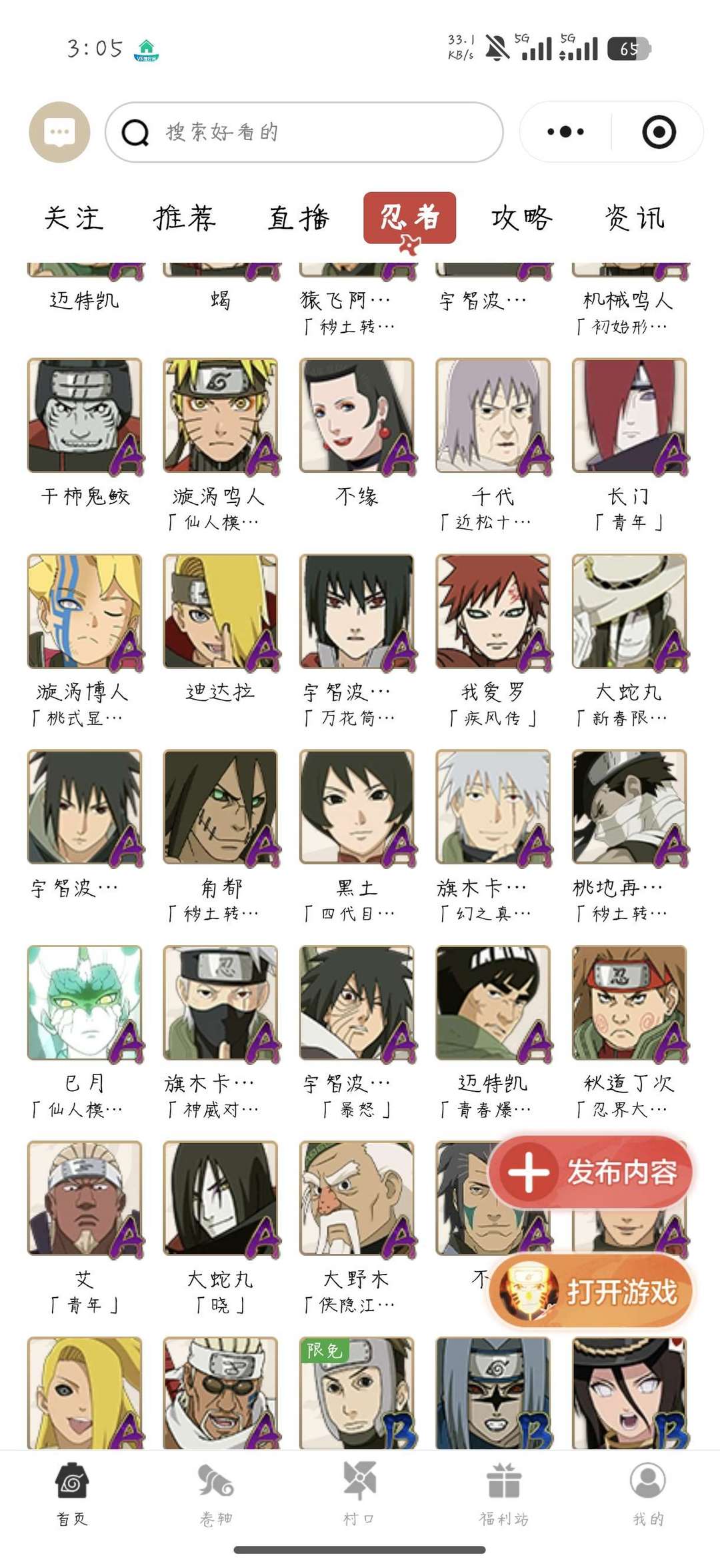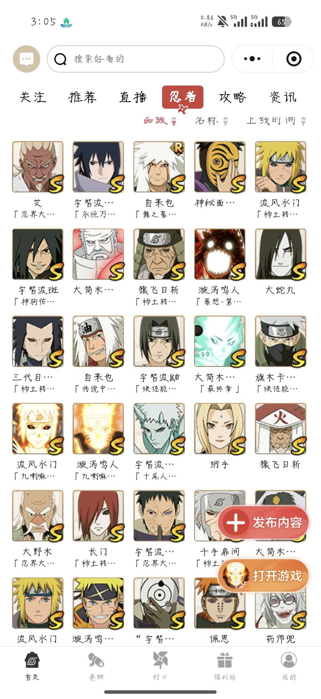 37个S忍者50个A忍十尾带土各种高质量忍法帖忍者 1500万战力团本随便打,可打段位赛,质量很好
