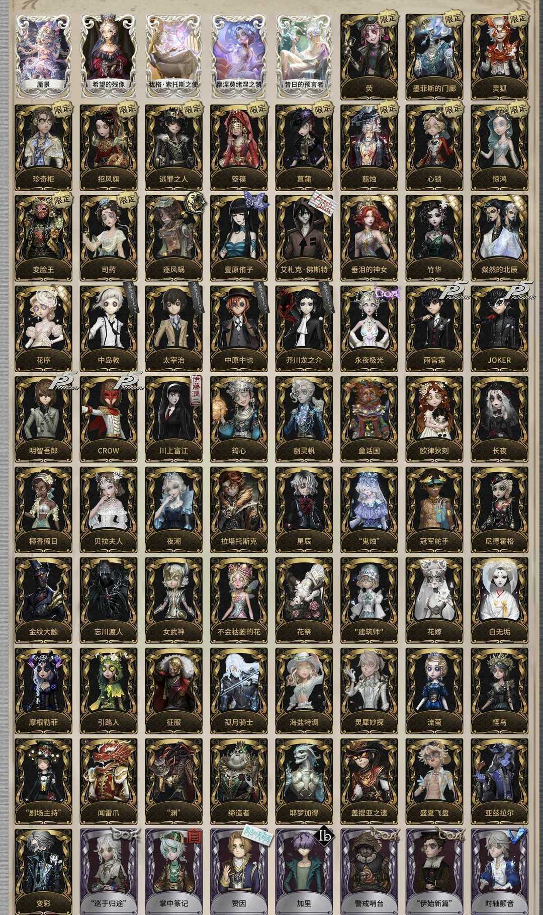 共享满虚妄♥120金♥小女孩虚妄蜃景♥JOKER♥文豪野犬满配♥杀戮天使♥壹原侑子♥逃罪之人♥箜篌