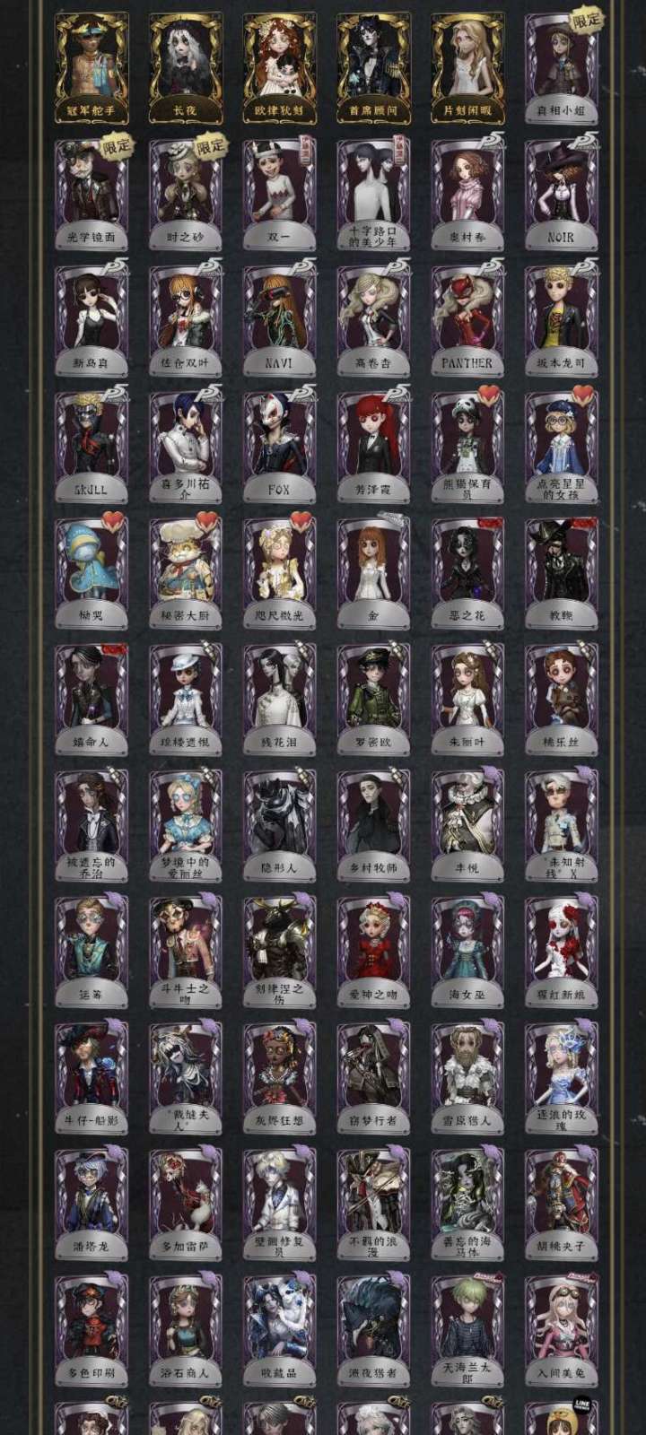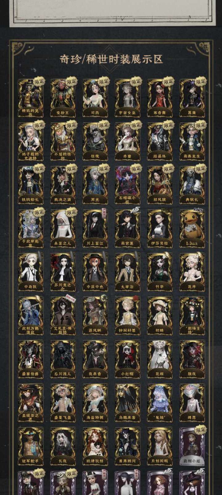 共享81金✨文豪全✨鸽子✨赤宴✨宇宙女巫✨真相小姐✨典狱长✨艾扎克✨菖蒲✨伊莎贝拉✨于此岸赴宴✨石榴