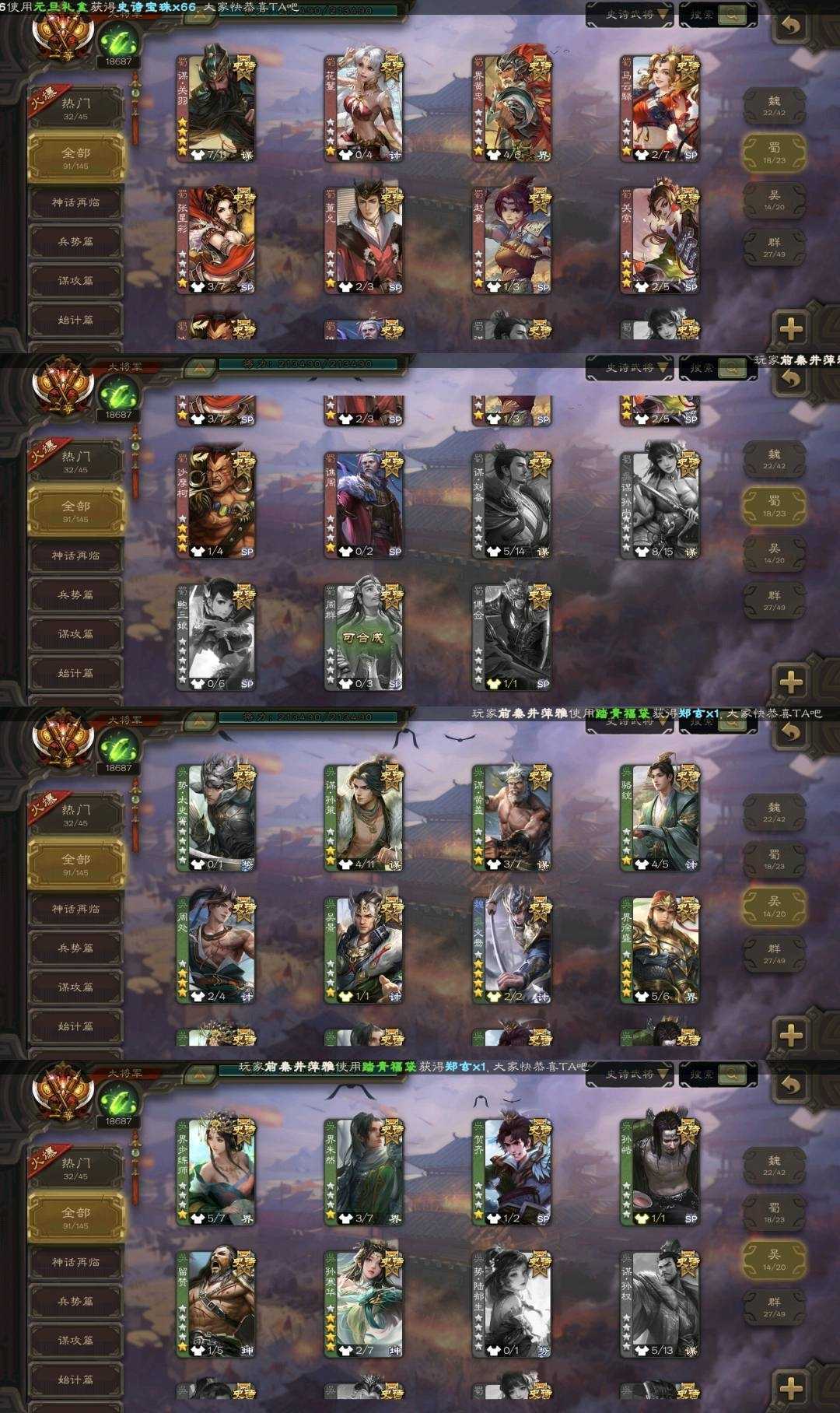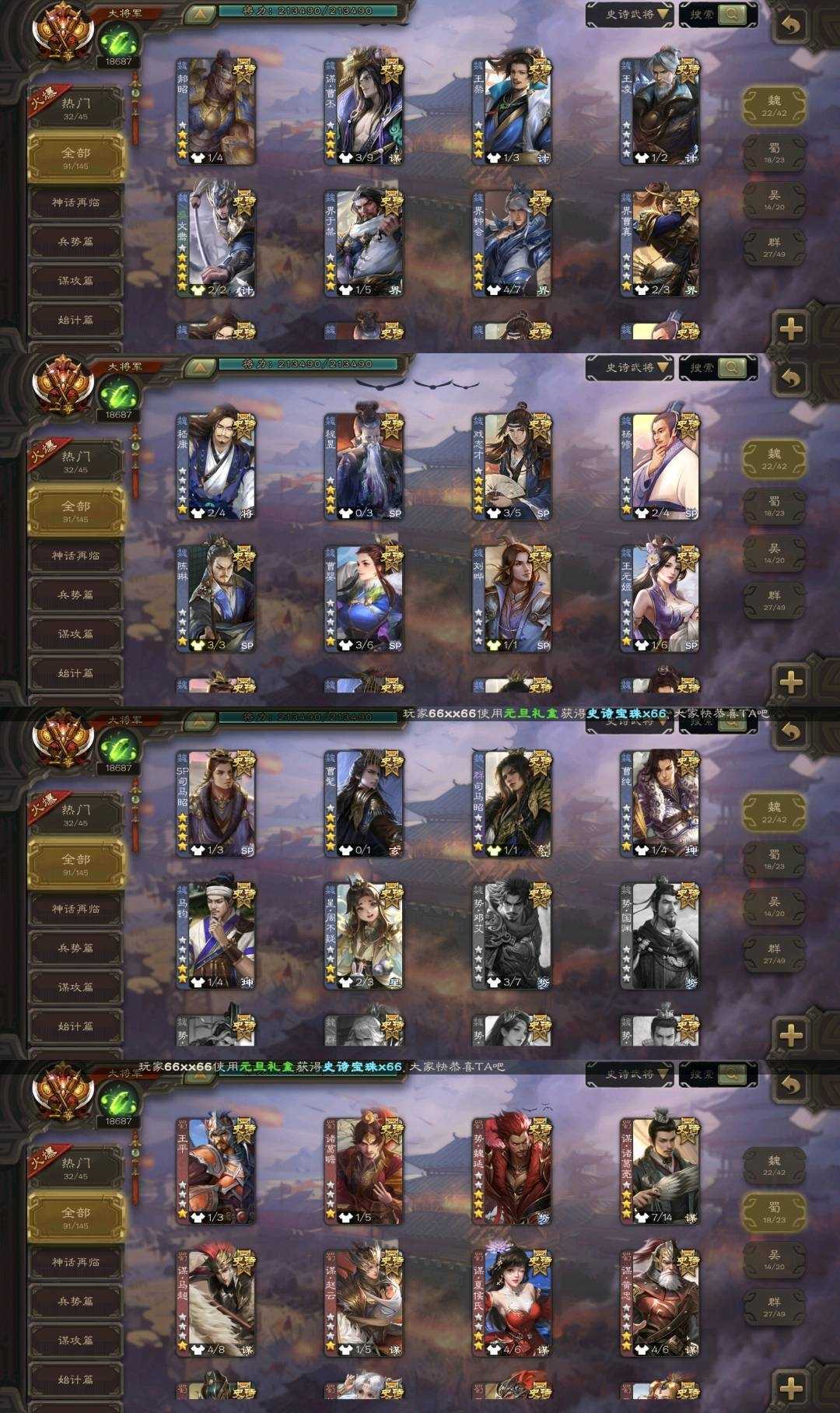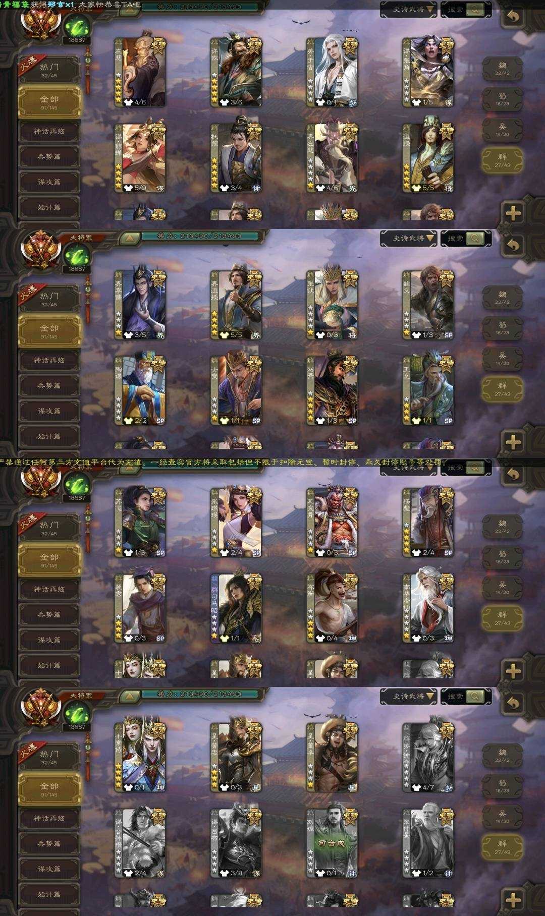 【三卡过万】91史诗一等大将军✔势魏延曹髦谋曹丕✔动态刘焉双形态文鸯司马昭✔动态界沮授谋诸葛亮谋关羽