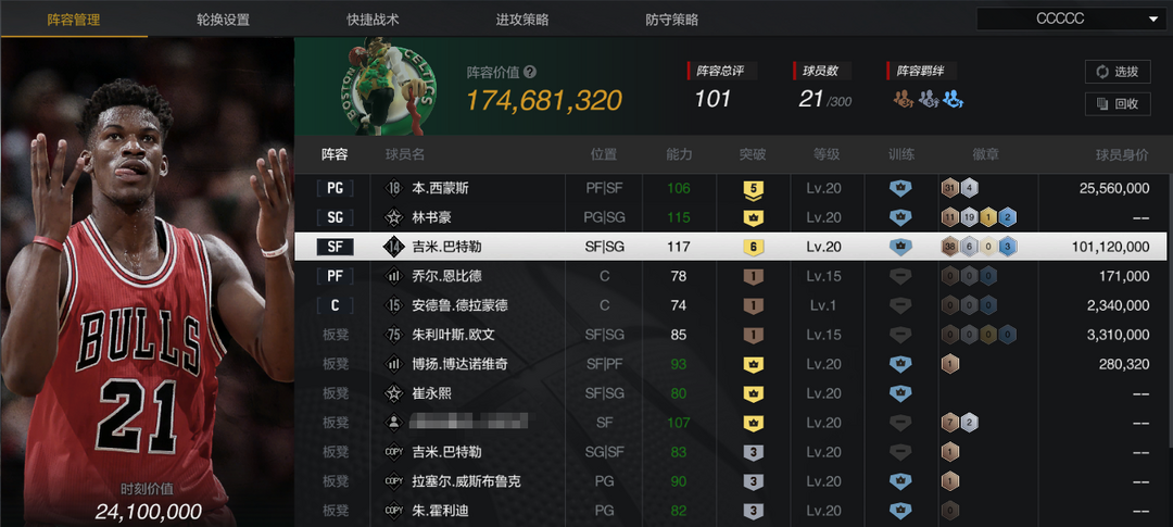 限制: 撤单率<50%才可租用此帐号【6突时刻巴特勒】【5西蒙斯】【三分精准】【暴力飞扣】【防守铁闸门】
